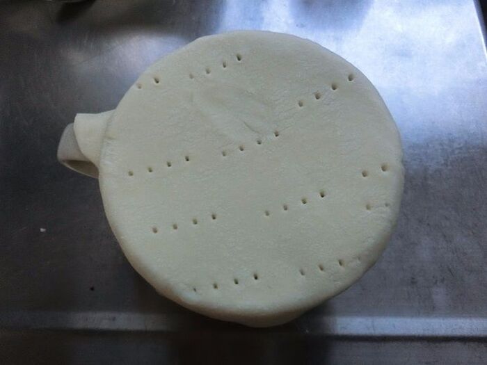 冷凍パイシートは室温で柔らかくし、カップより少し大きめに伸ばしてカップにかぶせます。