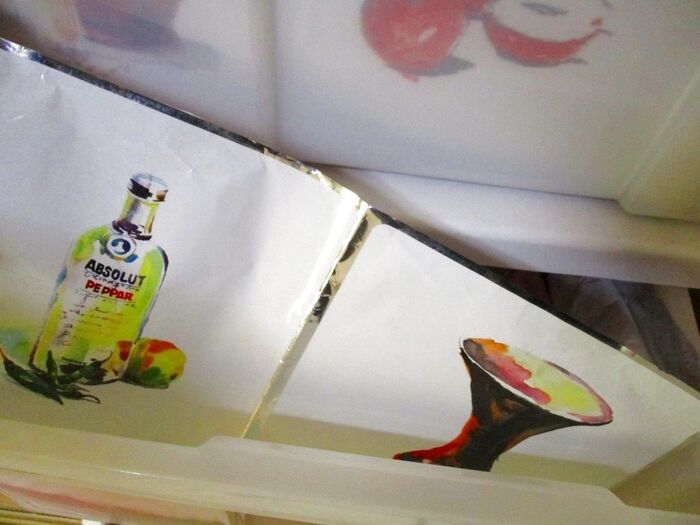 *アルミニウムキッチンシートは本来、キッチンで油よけに、シートをはがし、