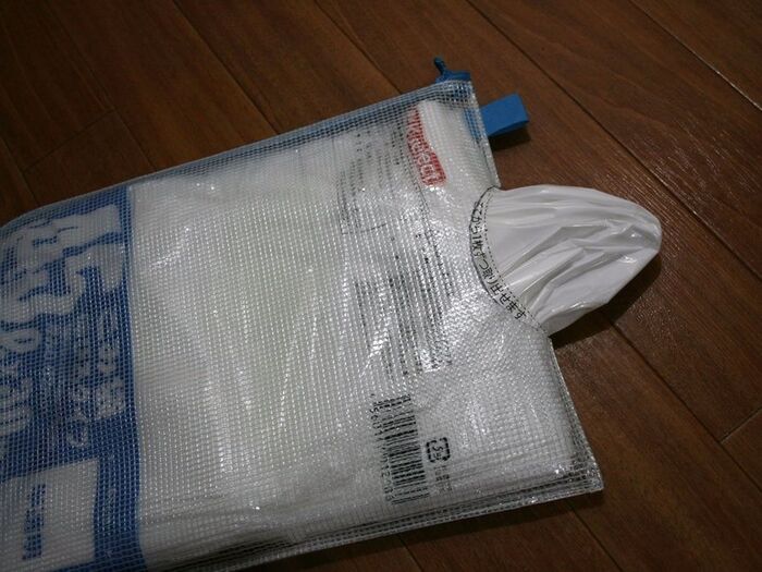 この状態でチャックを閉め、中のゴミ袋が取り出せるように連絡袋の黒い線の部分をカットします