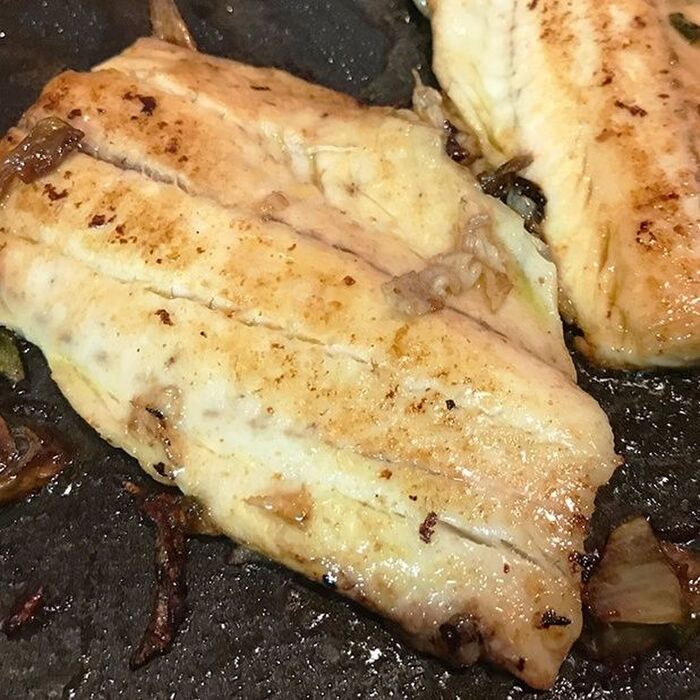 オリーブオイルとにんにくを入れたフライパンを熱し、香りがたったら身をステーキに。