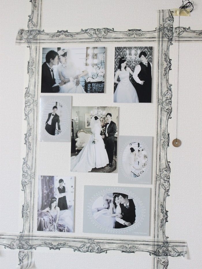 5mmほどの厚さがあるボードなので、壁から少し浮き上がって見えて、写真をそのまま貼るよりも高級感がでます。