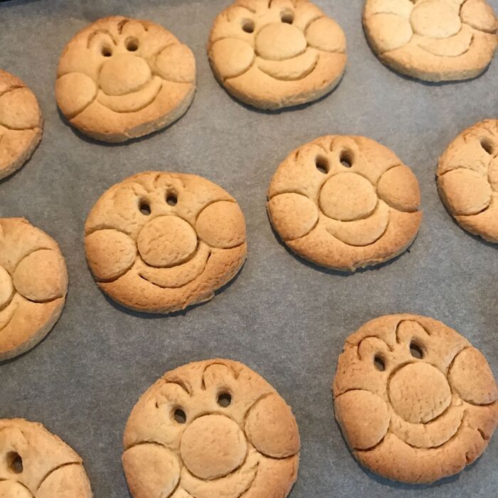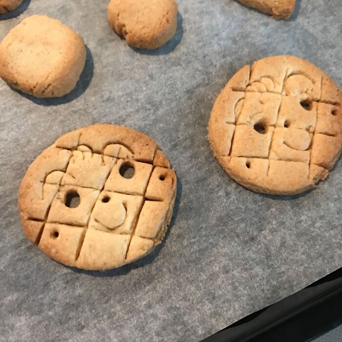 ホットケーキミックスを使う事でしっかり筋をつけた生地も焼いてる間に膨らんでしっかりと一枚のクッキーに焼きあがります!