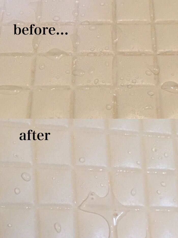 今まではメラニンスポンジでゴシゴシしていたのですが、今回はシュッとして、5分待って軽くブラシで擦っただけです。