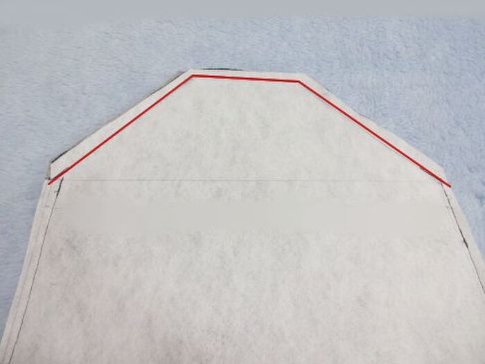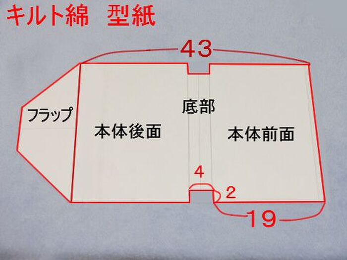 写真のサイズ(数字を書いていない部分は、上と同寸)に、キルト綿を裁ちます