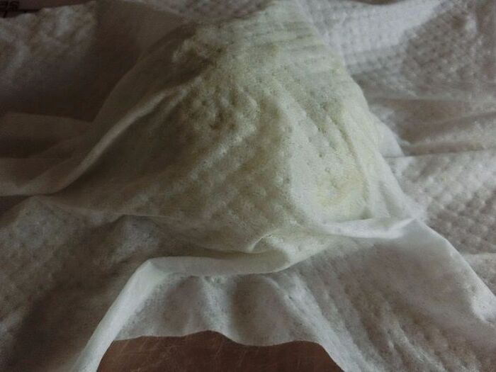 パン生地が2倍くらいに膨らんだらガス抜きをします。丸め直してぬれ布巾をかぶせ10分ベンチタイム。