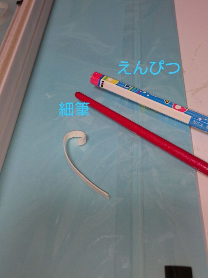 輪切りにしたペーパーの芯を、鉛筆や細筆で丸めて形作ります。