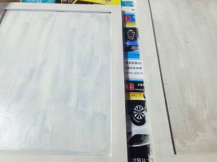 コルクボードを水性塗料で白く塗ります。