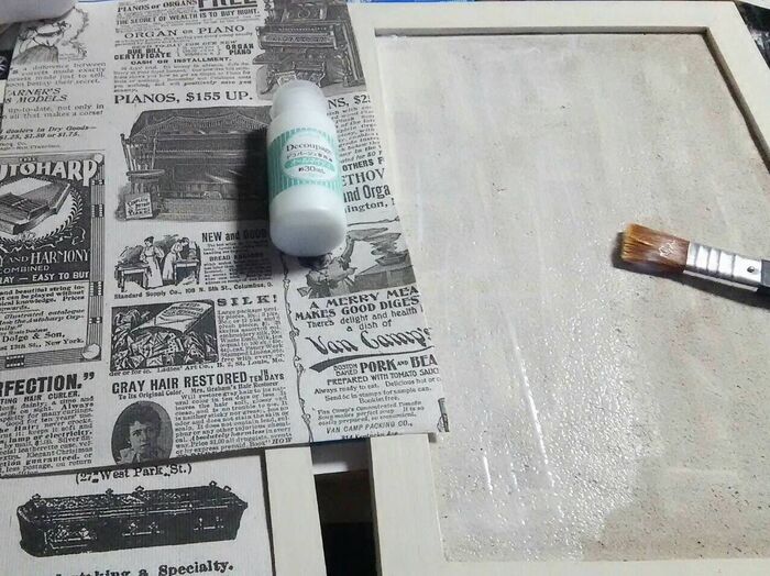 そして、デコパージュ液をコルク部分に塗って、紙を貼って、乾かします。