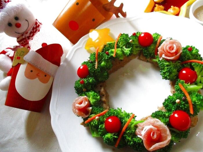 並べてます。その肉の上に、ブロッコリーをのせていきます