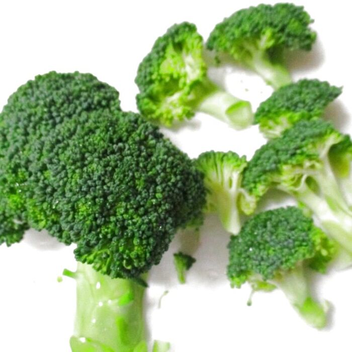 ③ブロッコリーは、よく洗い、茎と房に切り分け、大きな房は切れ目を入れてさく