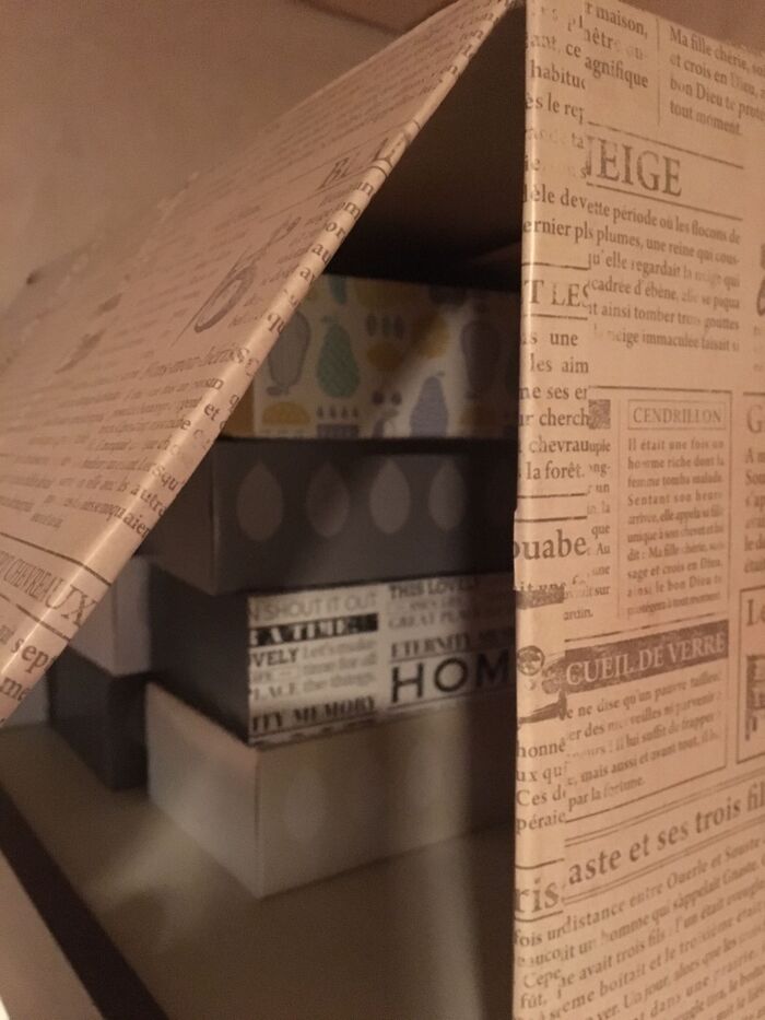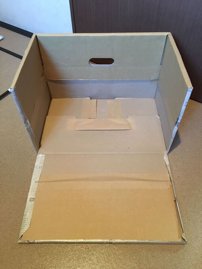 段ボールは このようにして、外側にリメイクシートを貼ります。
