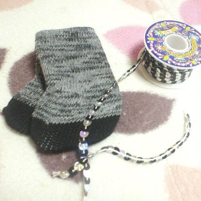 ちょっとグレーでシックな感じだけど、小さなぬいぐるみを入れたり、ソックスにボタンを付けてもいいかも~~((o(=´ー`=o)