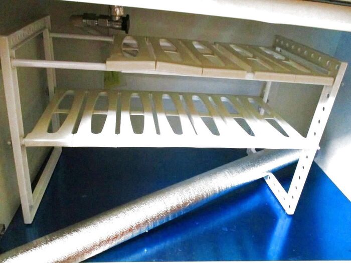 コンロ下です、シートを久々に変えます、一度すべてのものを出して、拭いて