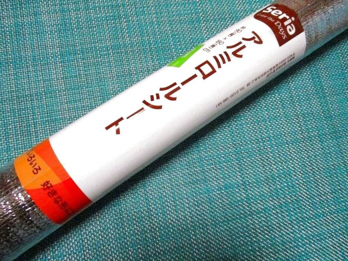 下にひくのは、セリアで購入の100円アルミロールシートです、セロテープで浮かないように固定を軽くしました