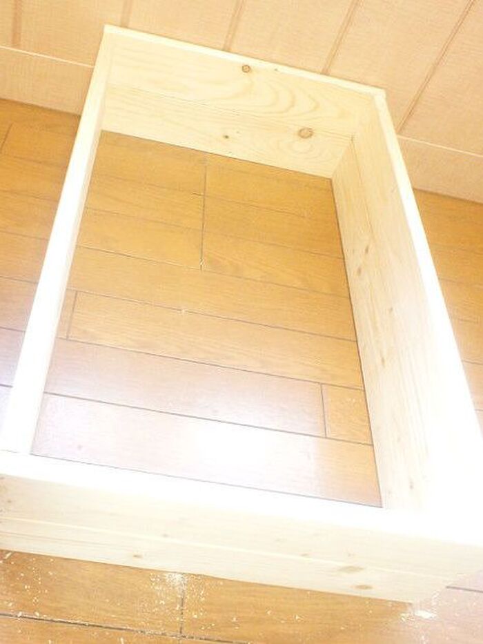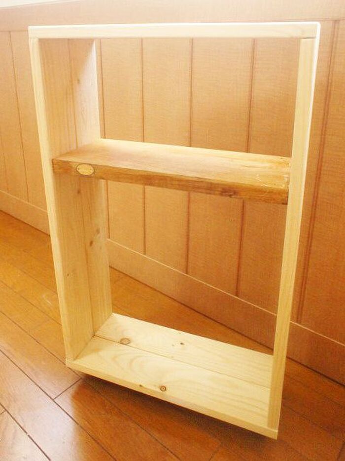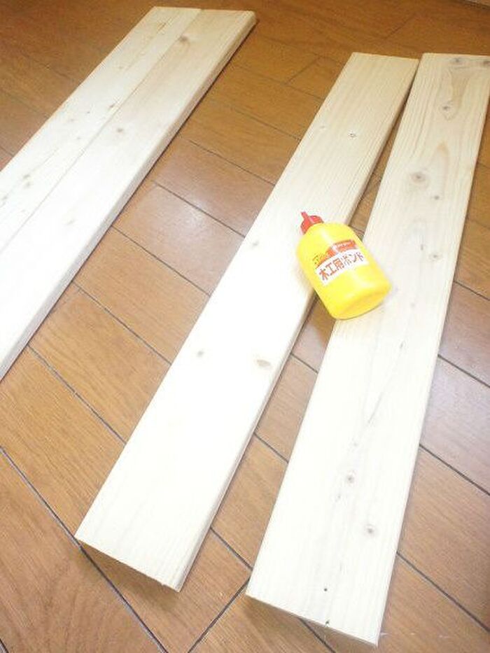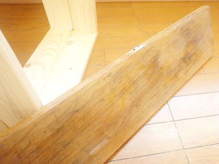もう1段付けたかったので、以前にベランダで花台に使ってた板を再利用。