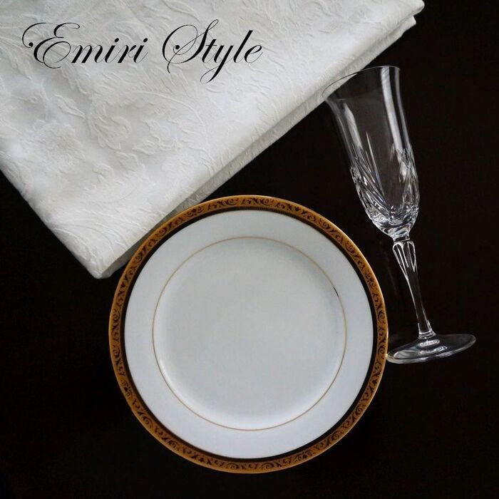 「白」と「ゴールド」が、重なる色なので、クロスや食器など、基本のセッティングアイテムをこの色で揃えます。