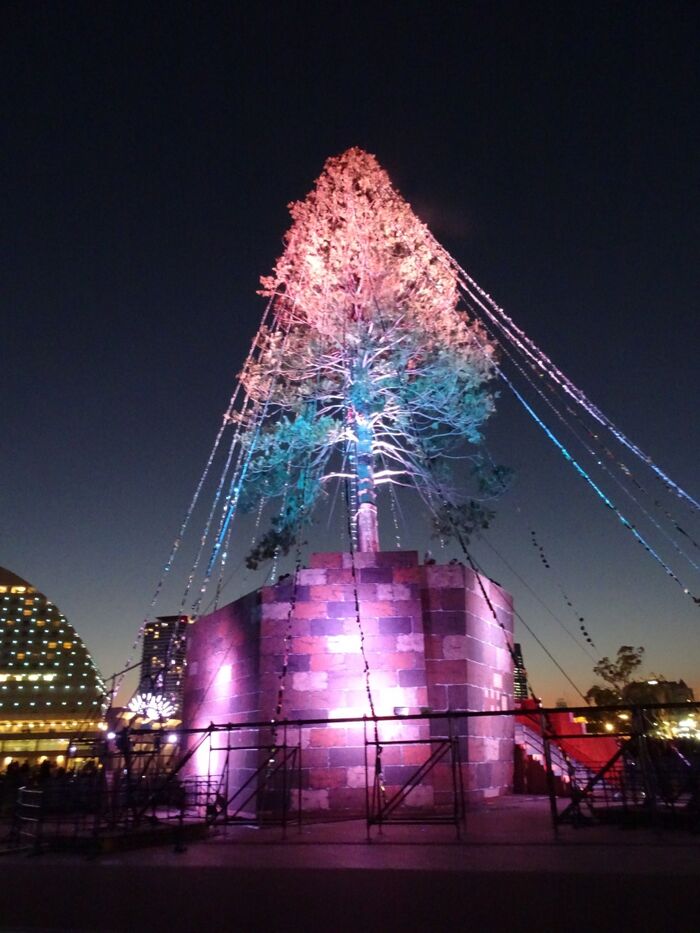 夕方、世界一のクリスマスツリーを見に行きました。