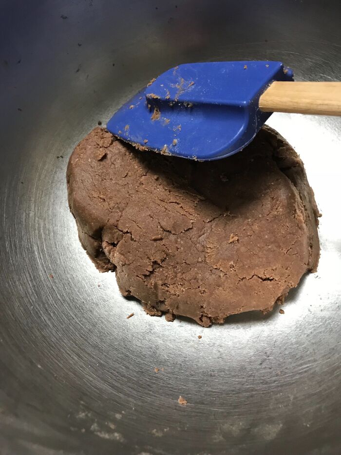 ④生地をラップで包んで冷蔵庫に入れ、30分くらいおきます。