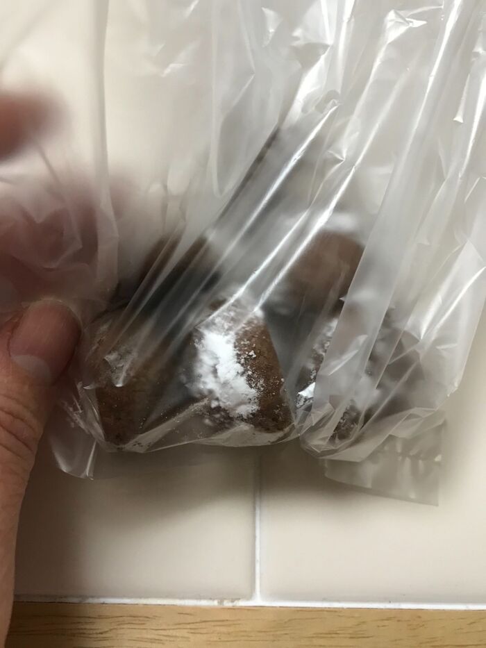 ⑧焼き上がったら、網の上で粗熱がとれるまで冷まし粉糖をまぶして、できあがり♪