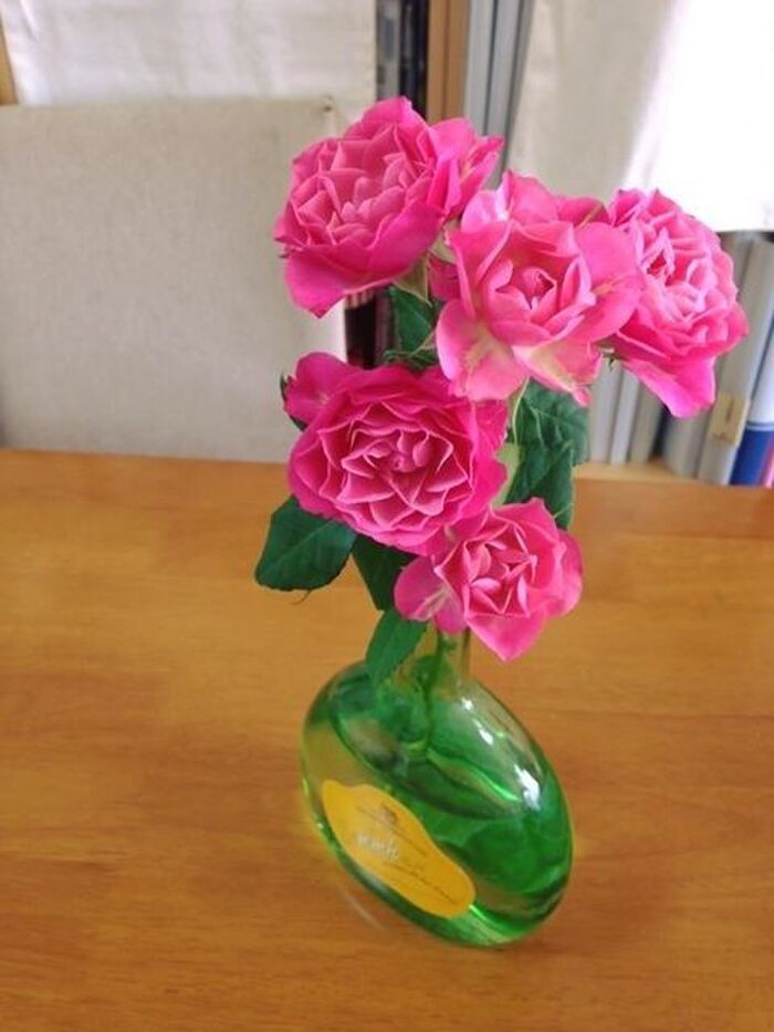 素朴な一輪挿しにはワインの空きボトルが似合いますね。