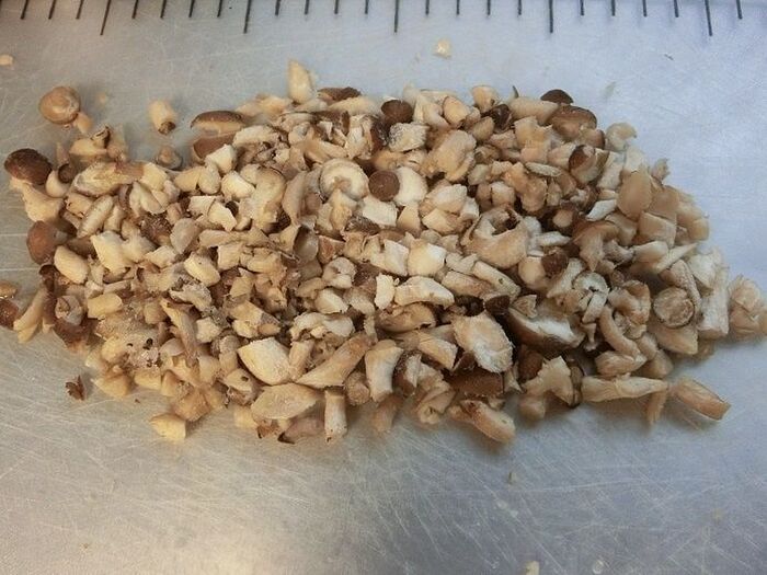 シメジは石突きを落としてほぐし、細かく切ります。ネギはみじん切りにします。
