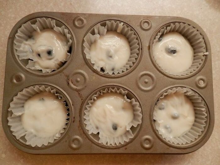 紙カップを敷いて、カップの8分目くらいまで生地を流し込みます。