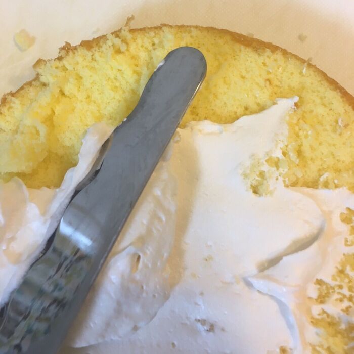 ⑦ホイップクリームを全体に、まんべんなくぬる。
