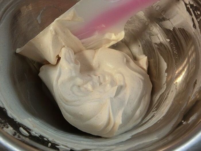 ★印の材料をボウルに入れて、しっかり角が立つまで泡立てます。