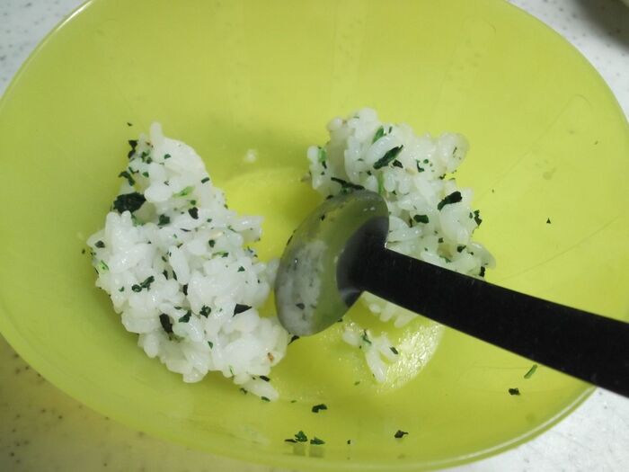 ご飯の1/4に混ぜ込みわかめを混ぜ、
