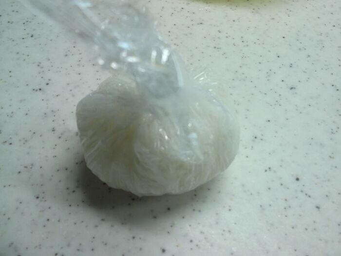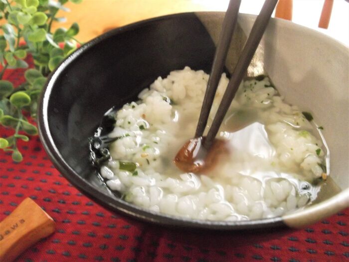 崩して、混ぜ込みわかめがふやけるまでしばらく待って