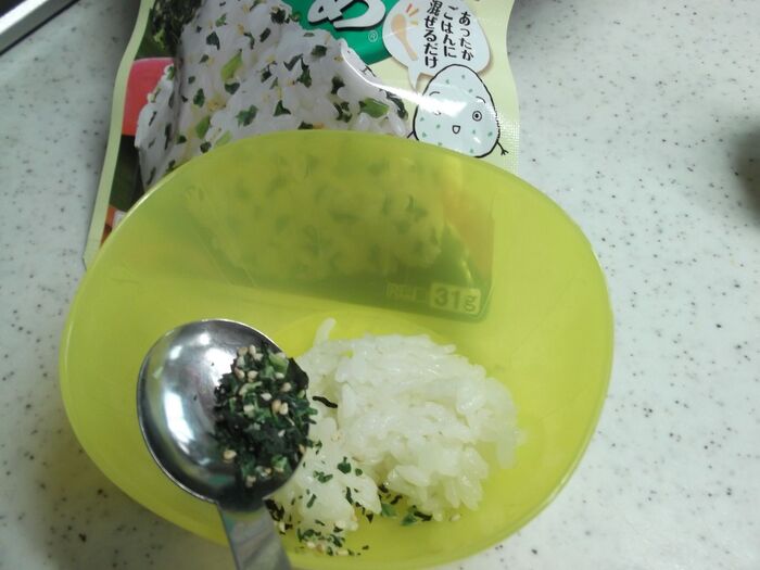 お好きな混ぜ込みわかめでどうぞ。今回は若菜を使っています。