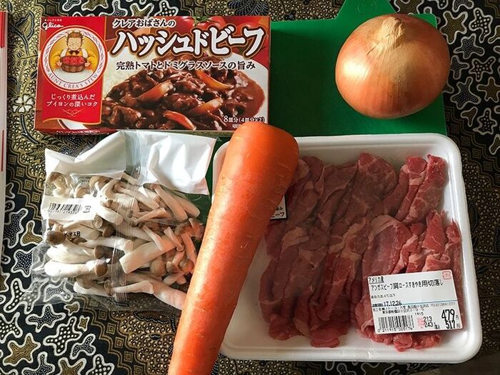 今日は、お手軽なハッシュドビーフのルーを使用して作ってみます。