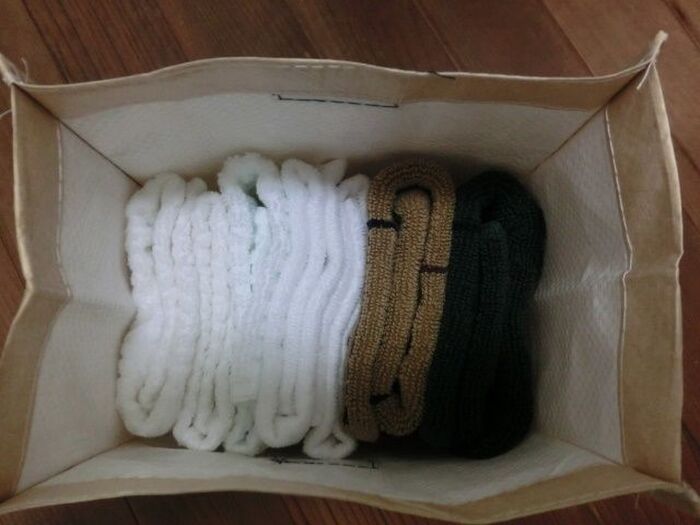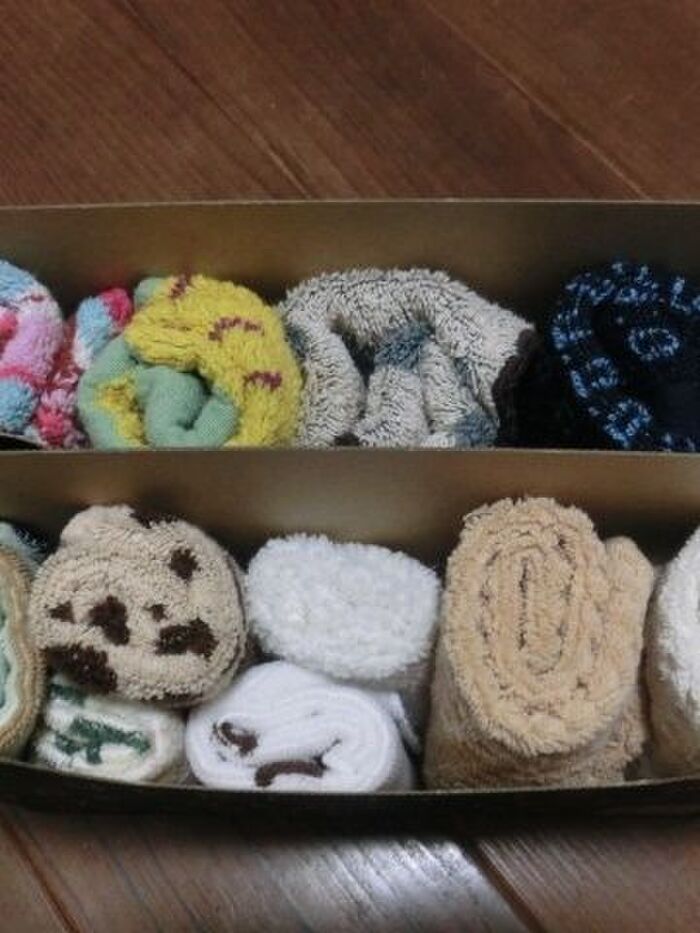 タオルハンカチばかりなので、くるくる丸めて収納しています。