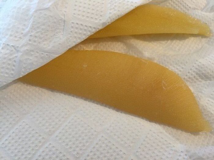 かずのこは薄皮をむいてキッチンペーパーで水気をふき取り4~5等分する