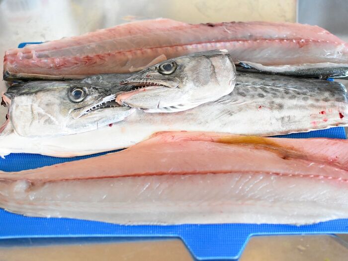 さわらを選ぶ時は写真のように目が澄んでいて、身体に艶があるものを。