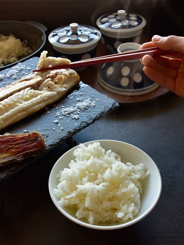 ごはんですよー! とみんなを食卓に呼んで、席についたら炊き立てのほかほかご飯をよそう。