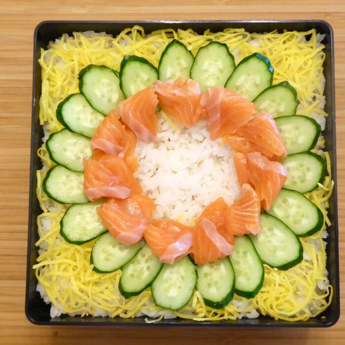 あとはお花を描くようにそれぞれの具を丸く盛り付けていきます。