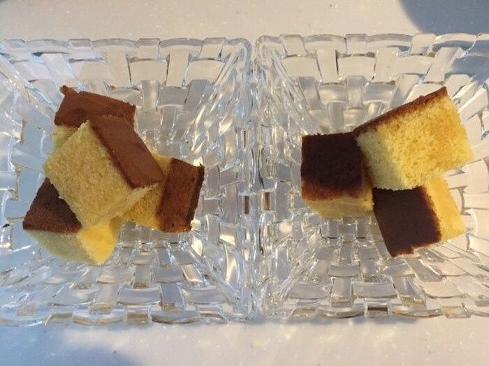 カステラを食べやすい大きさに切り器に入れラム酒をふりかける