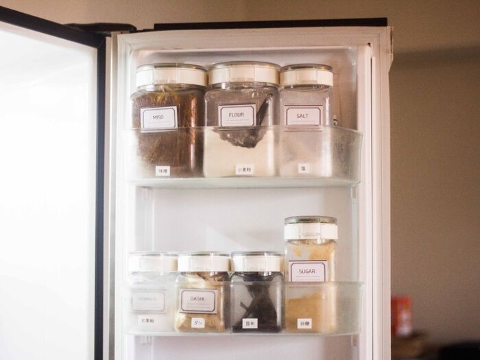 冷蔵の粉モノも、以前はフレッシュロックに英字のラベリングを張り付けていましたが、「小麦粉」が「FLOUR」となっているため実家の母が手伝いに来てくれたときに、いつも「小麦粉どれ?」と聞かれるはめに。。。