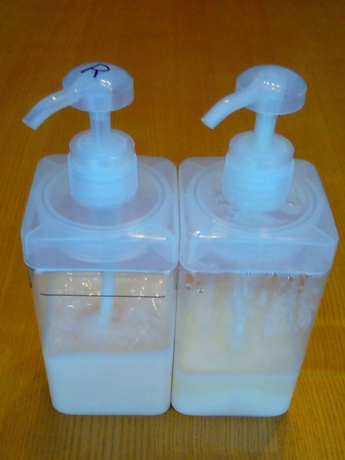 シャンプーもコンディショナーも同じ容器を使っているので、