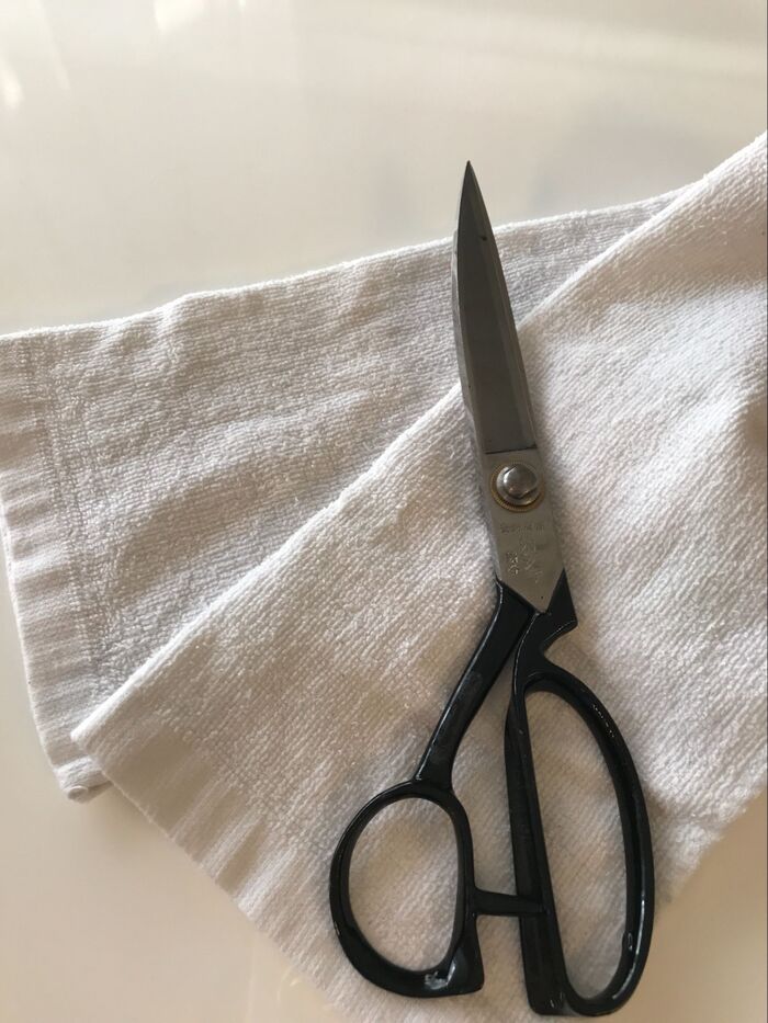 古くなったタオルとハサミ。