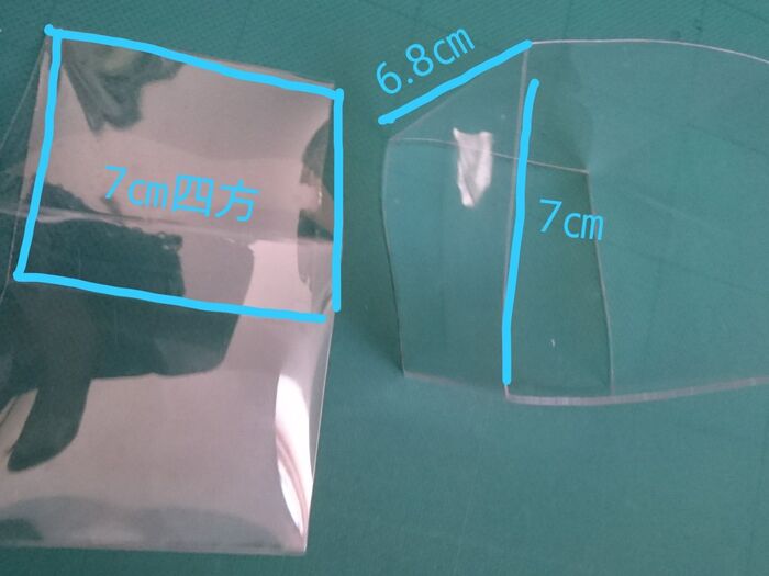 7㎝四方の方に、6.8㎝の高さのを入れるとクリアなケースの出来上がりです。