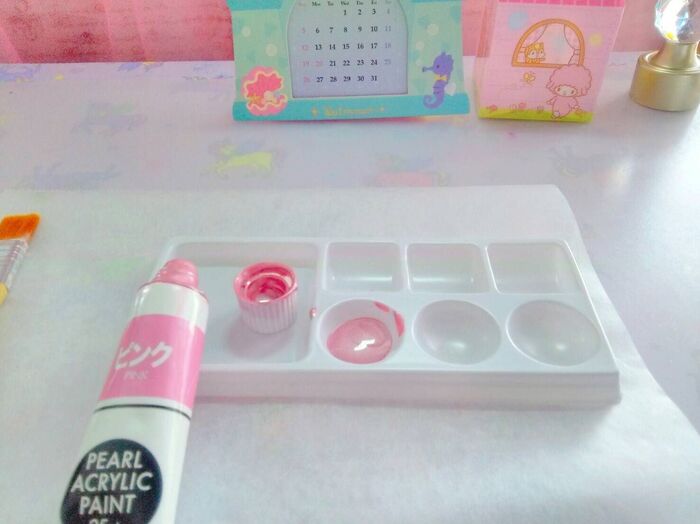 今回は、ダイソーのパールピンクのアクリル絵の具です☆