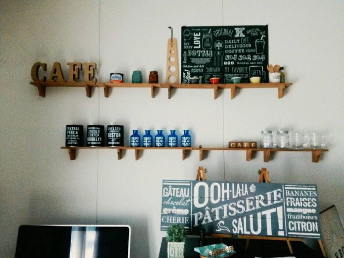 よく、うつの人はお部屋の片付けが苦手と聞きますが、お部屋で座った時に見える一部分だけでも、ここはカフェ風の物だけ置く!とかしてみるのをオススメします☆