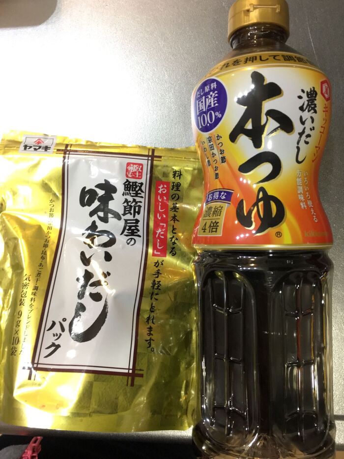 出汁パックなどお好きなもので大丈夫ですが、ヤマキの出汁が絶品でオススメ〜^ ^イオンで購入しました。
