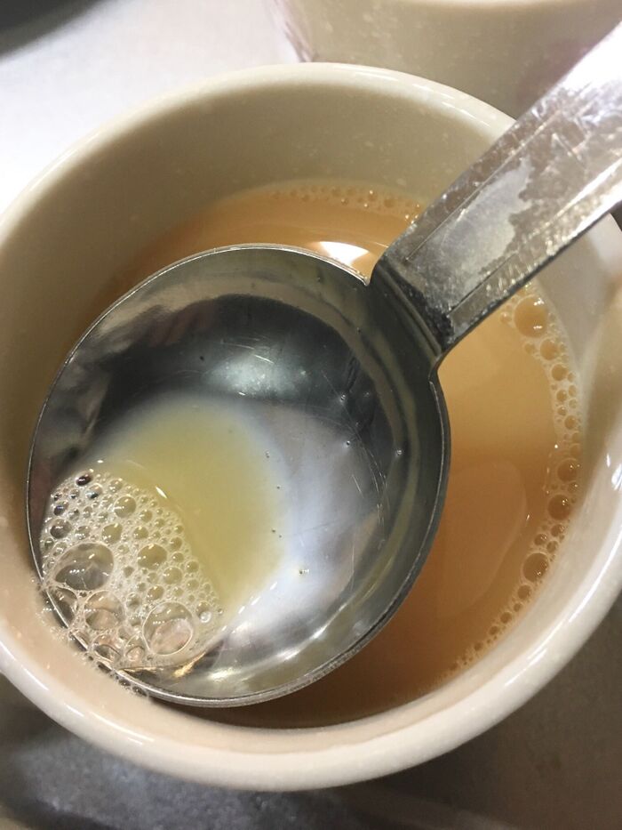 表面に泡があるとすが入るので、スプーンで泡を取ると簡単です。