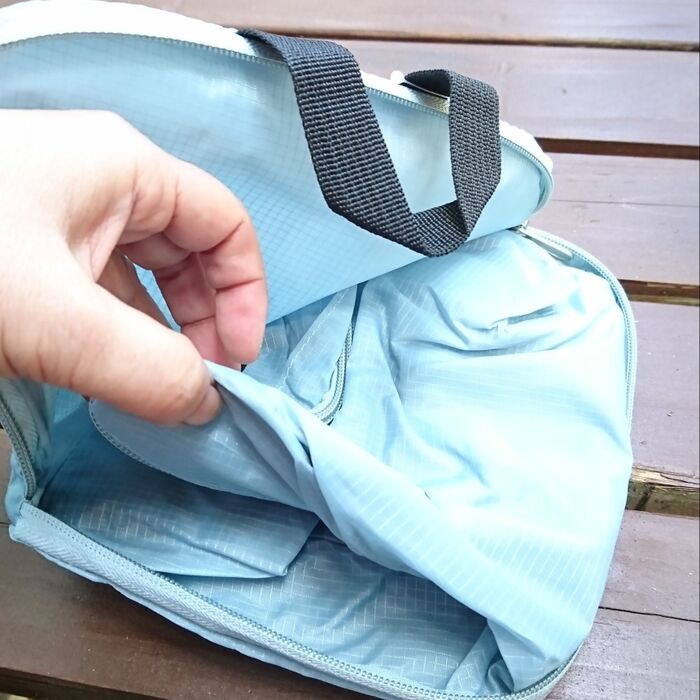 ここの問題は、外ポケットにしたとき半円にジッパーが開くので、中身が落ちる可能性がある。