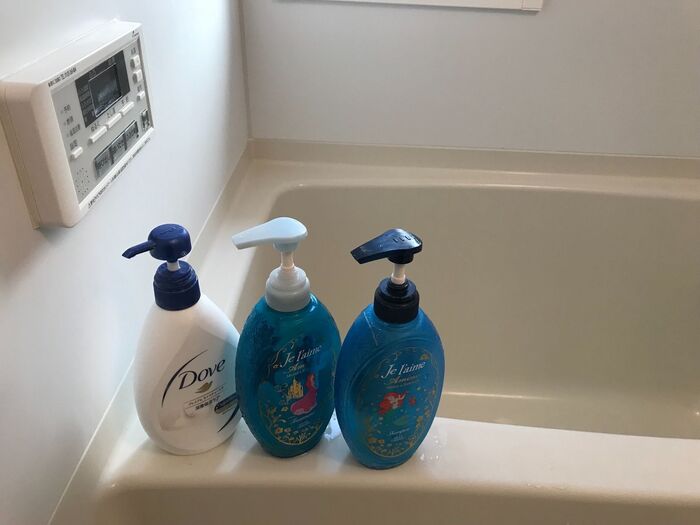 以前使ってたシャンプーボトルは凝ったデザイン?なので表面にいろいろ凹凸でデザインがあって、可愛かったんですがそれ故に石けんカスの汚れ目立つという欠点がありました?