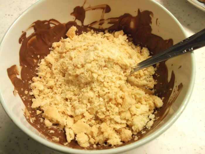 残った生地のクッキーを砕きながら入れ、混ぜる。