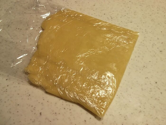 ラップにのせ、ラップを被せて3mmくらいに伸ばす。